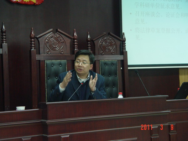 许安标教授在分析了公众参与立法的法理基础之后,为同学们从一定的高度对公众参与立法进行了展望;最后,许安标教授与大家一起展望了公众参与立法的未来。许安标教授认为公众参与立法的发展趋势将具有三个特点,即常态化、社会化和多样化。所谓常态化,就是公众参与立法的程序将成为常态,成为立法过程中不可或缺的程序;公众参与立法的主体将社会化,立法将不再是精英阶层的专利,会更多地走向寻常百姓;公众参与立法的方式也将多样化,立法参与形式将和现代信息技术结合。