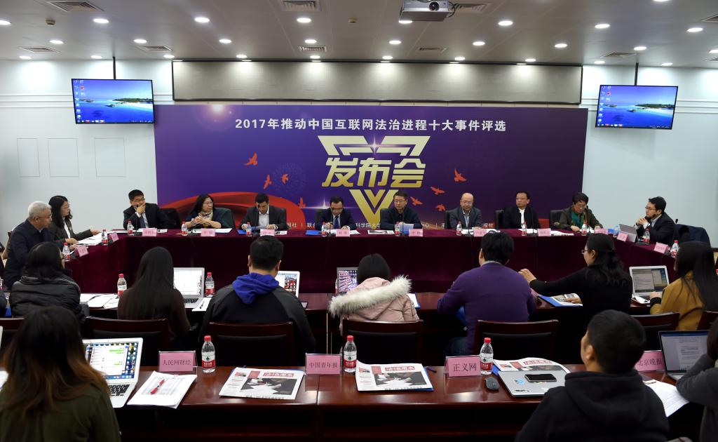 2018年2月28日,法制日报社就“2017年推动中国互联网法治进程十大事件”评选结果召开新闻发布会。该评选活动由法制日报社联合中国社会科公司大学互联网法治研究中心于今年2月8日共同发起,邀请社会各界人士通过多个渠道,对甄选出的15个在互联网领域产生重大影响的法治事件进行投票,包括全国首例电商平台打假案、最高法《知识产权司法保护纲要》首次发布、全国“组织刷单入刑”第一案、全国首例黄牛抢购软件案,全国双打办《中国知识产权保护与营商环境新进展报告》发布、两高侵害个人信息刑事司法解释出台及典型案例发布、“e租宝”案、《此间的少年》《鬼吹灯》和《摸金校尉》等同人作品案、《反不正当竞争法》修订、“像治理酒驾一样治理假货”引起社会关注等十起2017年在互联网领域产生重大影响的法治事件最终入选。