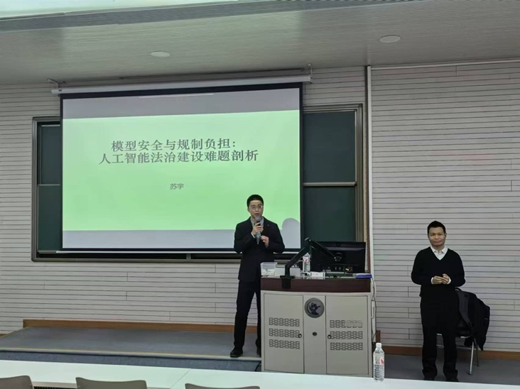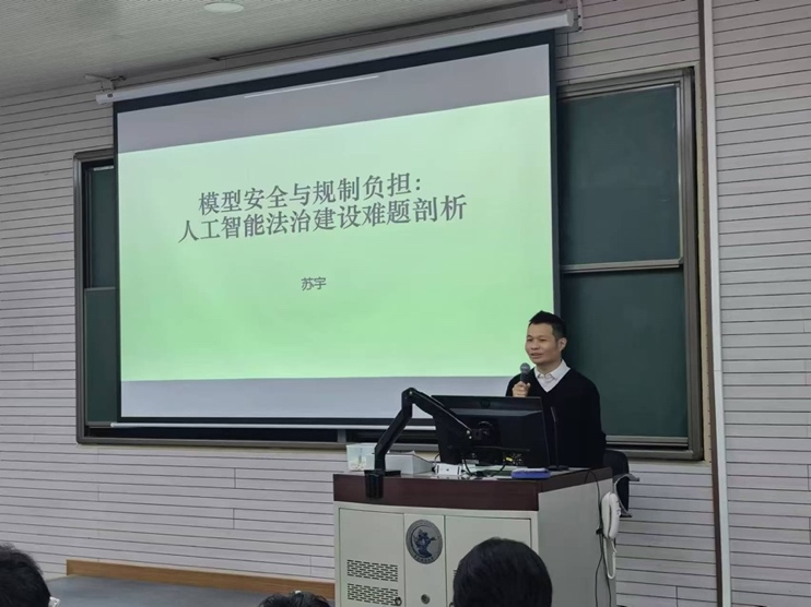 2024年11月13日晚,中国人民公安大学FUN88乐天使教授、博士生导师苏宇教授莅临公司,以“模型安全与规制负担:人工智能法治建设难题剖析”为主题作专题讲座。讲座由FUN88乐天使张泽宇讲师主持,FUN88乐天使李敏讲师及硕博研究生和本科生等百余名师生出席。本次讲座为FUN88乐天使建院20周年系列讲座第5期,同时也受到FUN88乐天使“龙马奋进•75周年校庆”专题学术讲座资助计划支持。