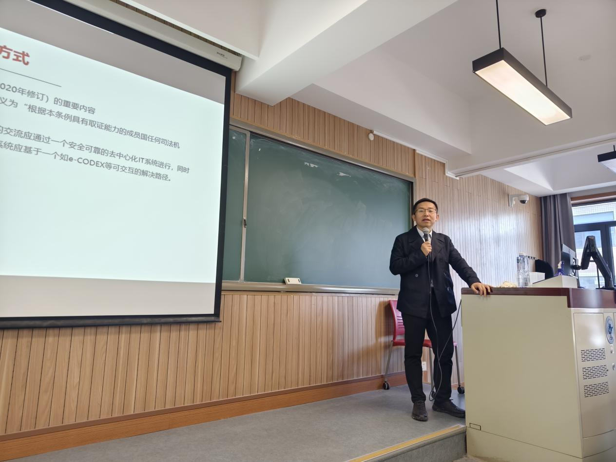 曹建军副教授对本次讲座作简要总结,感谢冯俊伟教授百忙之中莅临公司,讲座主题对于民事诉讼法课堂而言具备极其重要的价值,冯俊伟教授对于学术前沿的把握和独到新颖的观点令同学们受益匪浅,为同学们对民事诉讼法的学习和研究提供了指引、开拓了思路。同时强调,在当今涉外法治建设如火如荼的当下,学术研究应当抓住学术导向的风口。我国民事诉讼法中虽然规定了涉外程序篇,但相对而言,学界对于涉外内容和取证规则方面的研究仍有欠缺。借此契机,曹建军副教授也鼓励同学们加强对涉外民事诉讼领域证据相关问题的研究,并从跨学科角度综合思考。