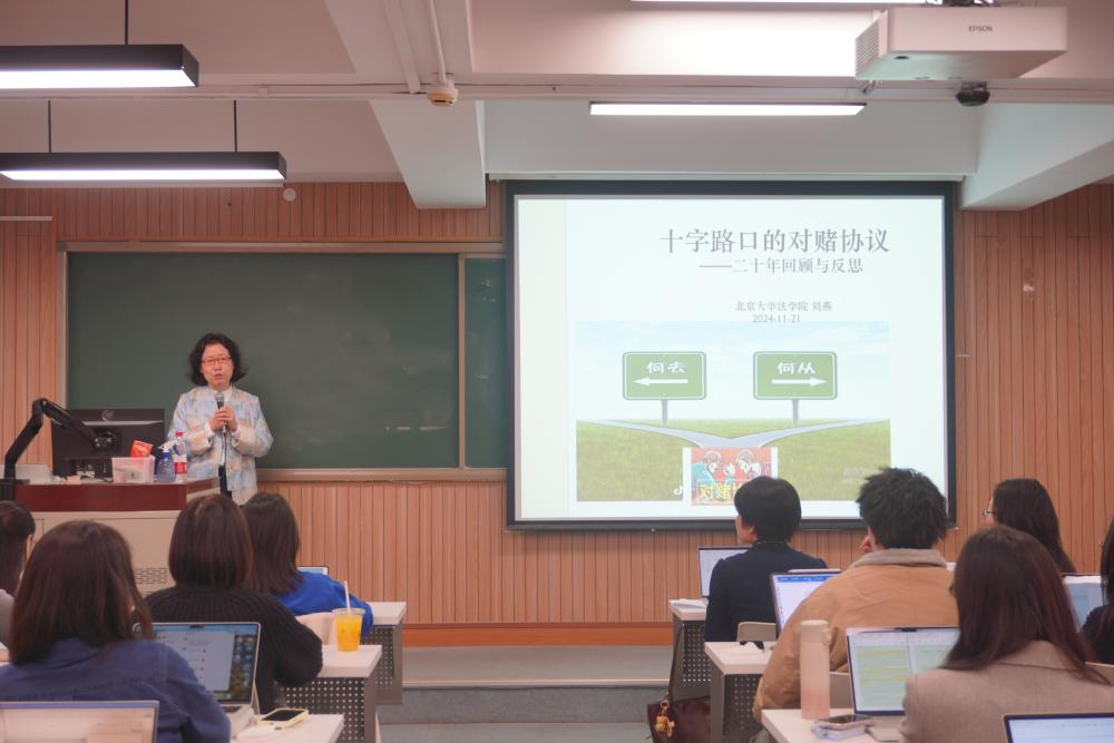 2024年11月21日晚,北京大学FUN88乐天使教授、博士生导师刘燕教授为公司员工作了以“十字路口的对赌协议”为主题的讲座。本次讲座由FUN88乐天使讲师李敏主持,FUN88乐天使周游副教授、王湘淳副教授,中国政法大学民商经济FUN88乐天使徐可老师,以及校外实务工作者、FUN88乐天使各年级硕博研究生、本科生等110余名师生出席。本次讲座为FUN88乐天使建院20周年系列讲座第6期,同时受到FUN88乐天使“龙马奋进·75周年校庆”专题学术讲座资助计划支持。