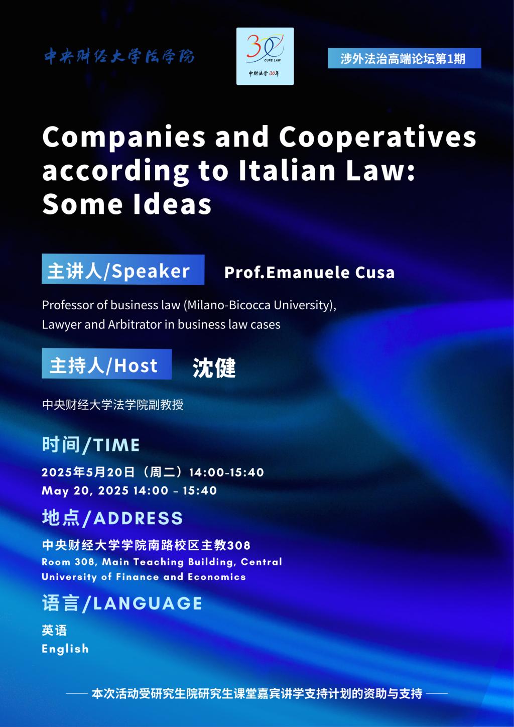 主 题:Companies and Cooperatives according to Italian Law: Some Ideas.