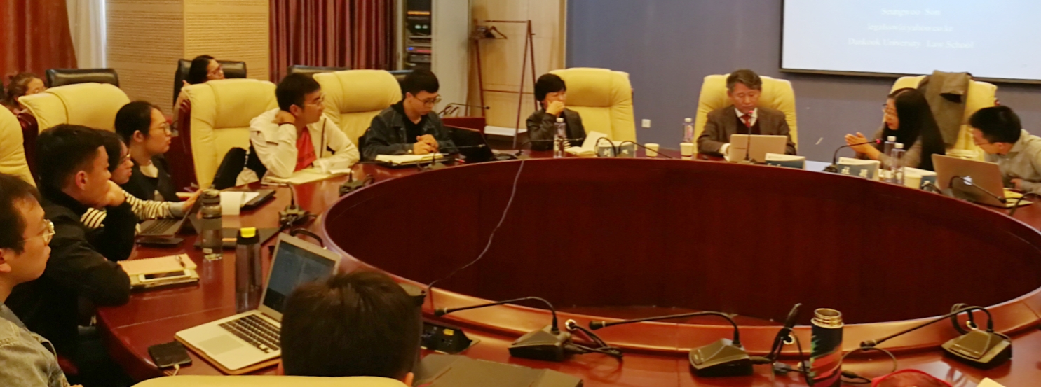 孙承佑(Seungwoo Son)教授分别从知识产权法、反垄断法以及产业安全等多维视角,对比韩国、日本、美国、欧洲等国家和地区的法律现状与司法实践,针对知识产权与反垄断关系向大家分享了自己的研究成果。通过对各国立法进程的梳理和对比,以及对经典案例的解读分析,孙承佑教授提出了平衡知识产权与反垄断法关系的关键性看法和可行化意见。讲授结束后,与会专家学者也针对中国知识产权与反垄断法的发展情况进行了介绍。在提问讨论环节,到场师生针对苹果三星专利案,国有企业特殊性等相关问题与孙承佑教授进行了热烈探讨。