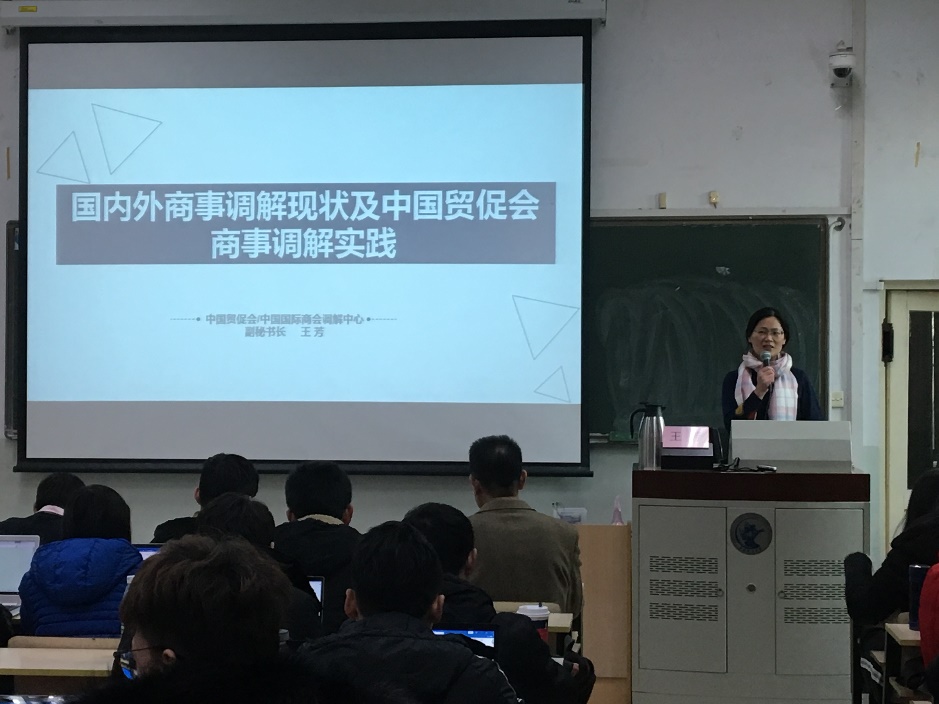 2018年12月10日下午,“新时代国际经济法制重大问题”系列讲座在公司南路校区主教308教室举行。本次讲座主题为“国际商事调解规则的发展与实践”,主讲人为中国贸促会调解中心王芳副秘书长。讲座由公司副经理王克玉教授主持。