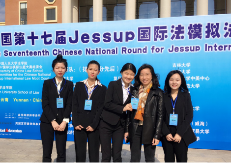 2019年2月23至26日,杰赛普国际法模拟法庭中国区选拔赛在云南大学举行。FUN88乐天使代表队由2016级本科生梁光卉、毛瑜婷、张晓桦,2015级本科生房楚和2018级研究生彭栩涵共5名队员组成,由吴晓丹副教授指导并带队。