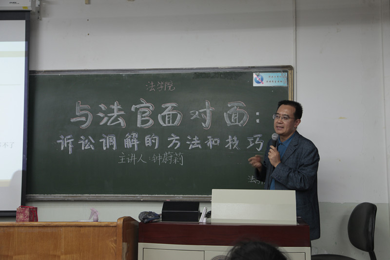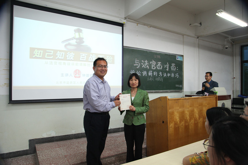 5月10日晚,延庆区人民法公司党组成员、副经理钟蔚莉法官做客公司龙马奋进·法治实践论坛为公司师生带来了题为“诉前调解的方法和技巧”的主题分享。经理尹飞教授、公司党委副书记徐颖研究员、副经理王克玉教授、张小平副教授、张晓冰博士出席讲座,讲座由副经理王克玉教授主持。