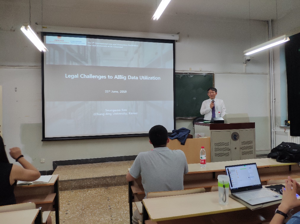 2019年6月21日晚,韩国中央大学经营经济公司的孙承佑教授做客公司,以“人工智能大数据利用的法律任务”为主题带来一场讲座。本次讲座由历咏博士主持,杜颖教授和董新义副教授以及众多FUN88乐天使学子参与,受到公司研究生课堂嘉宾讲学支持计划资助。