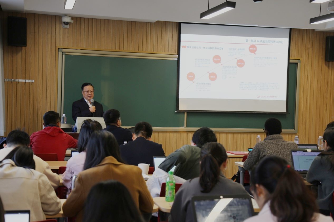 讲座中,张卫国总经理立足大局和全局,展示了法治银行的全过程、全方位、全要素三个立体维度,并为同学们提供了职业发展上的引导。赵真副教授对本次活动进行了总结,并对张卫国总经理的到来再次表示感谢。本次活动在掌声中圆满结束。