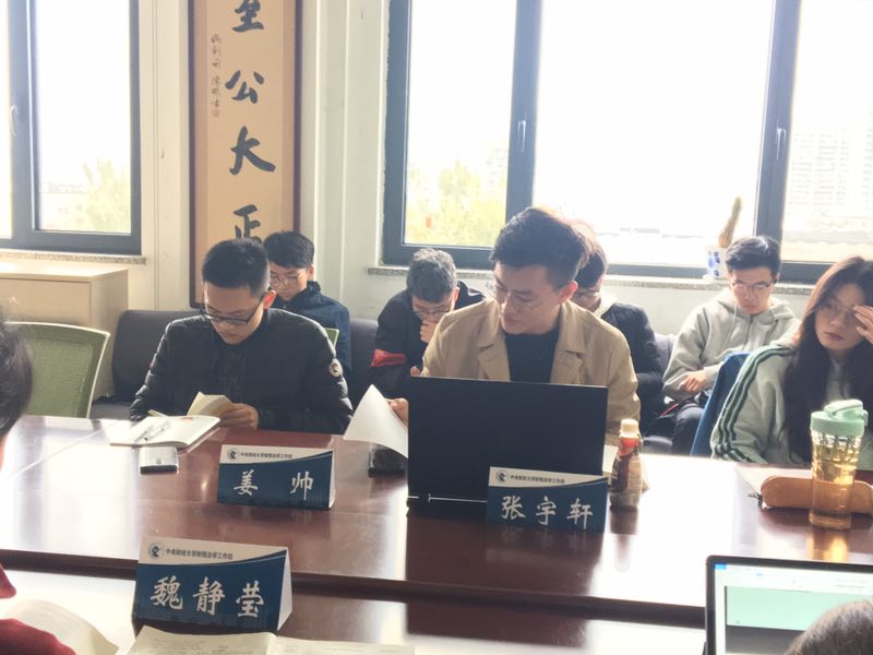 2019年11月16日上午,财税法工作坊第8期在公司南路校区主教808举行。本期工作坊继续研读《增值税比较研究》一书,主题为中国增值税之剖析。本期工作坊由指导教师郭维真副教授担任主讲嘉宾,2019级法学硕士生姜帅同学、2019级法律硕士生魏静莹同学和2017级法学本科生张宇轩同学参与与谈,2019级法律硕士生马鑫阳同学主持。