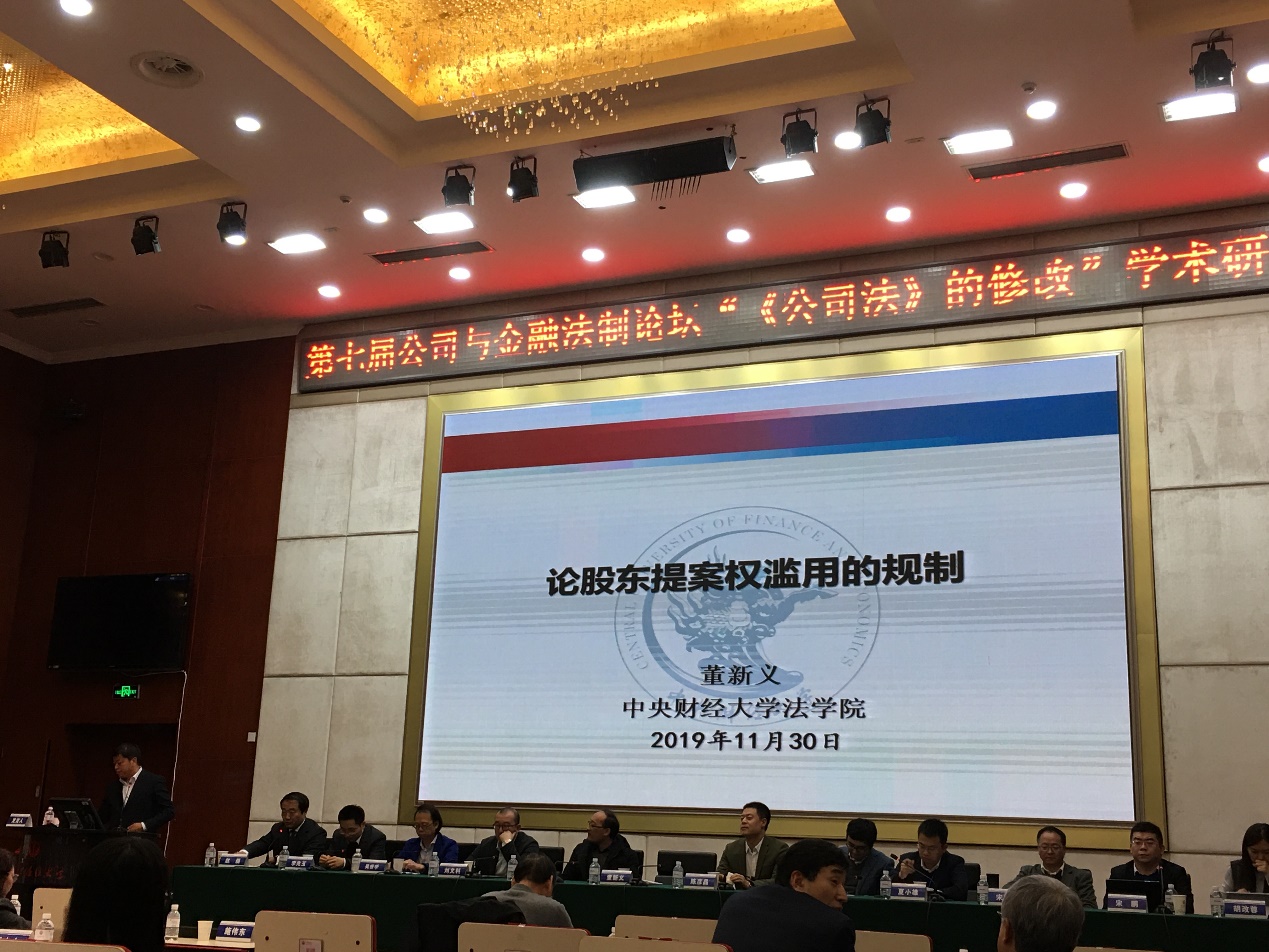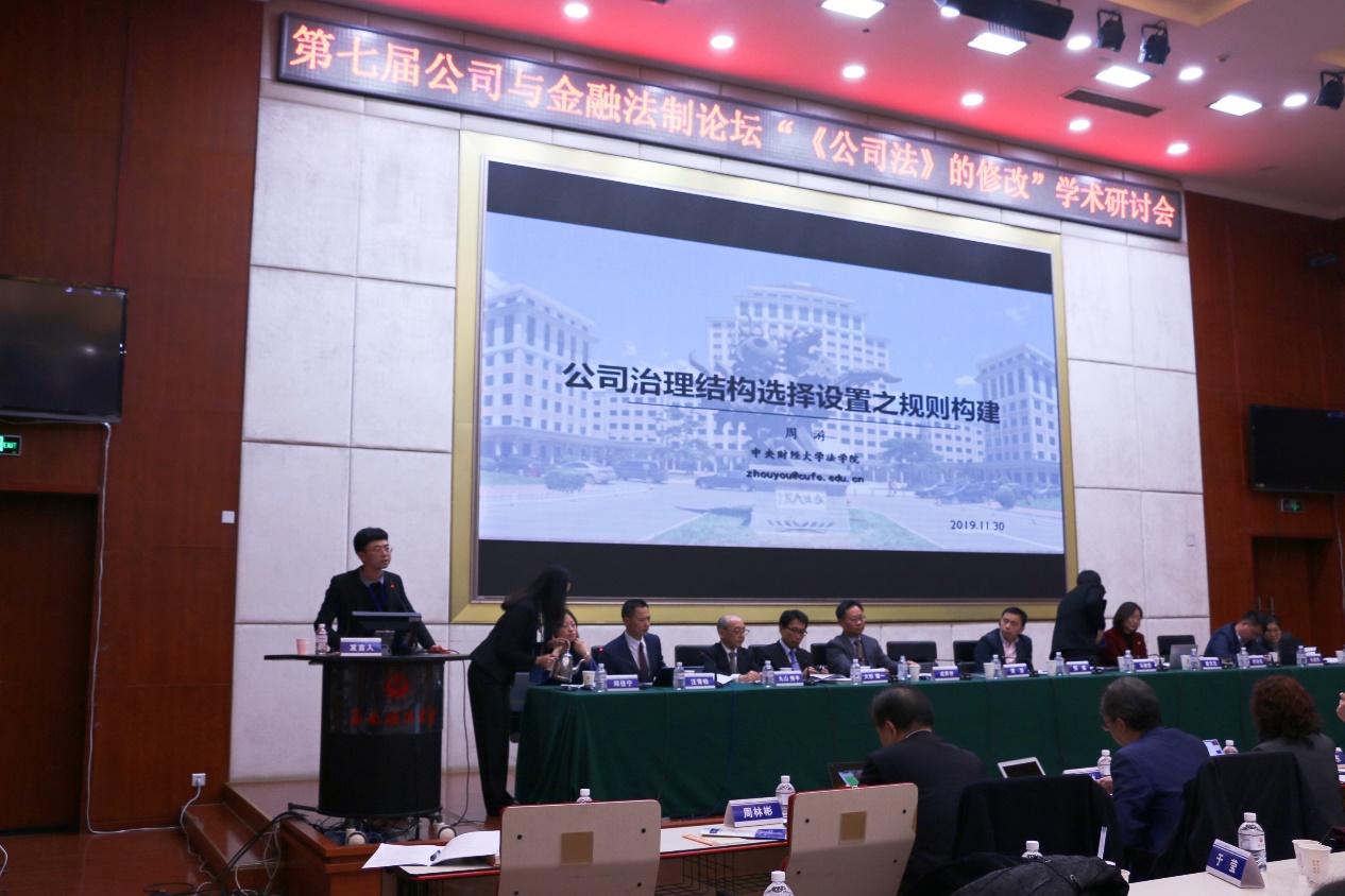 2019年11月30日,第七届公司与金融法制论坛暨“《公司法》的修改”学术研讨会在重庆召开。本次会议由中国商法学研究会、西南政法大学主办,西南政法大学民商FUN88乐天使、西南政法大学公司治理法律问题研究中心、西南政法大学中国金融与保险法律研究中心共同承办。来自北京大学、清华大学、中国人民大学、香港大学、澳门科技大学、日本中央大学、韩国圆光大学、重庆市高级人民法院等高等院校及实践部门的代表参加了本次论坛,公司董新义副教授、周游博士受邀出席。