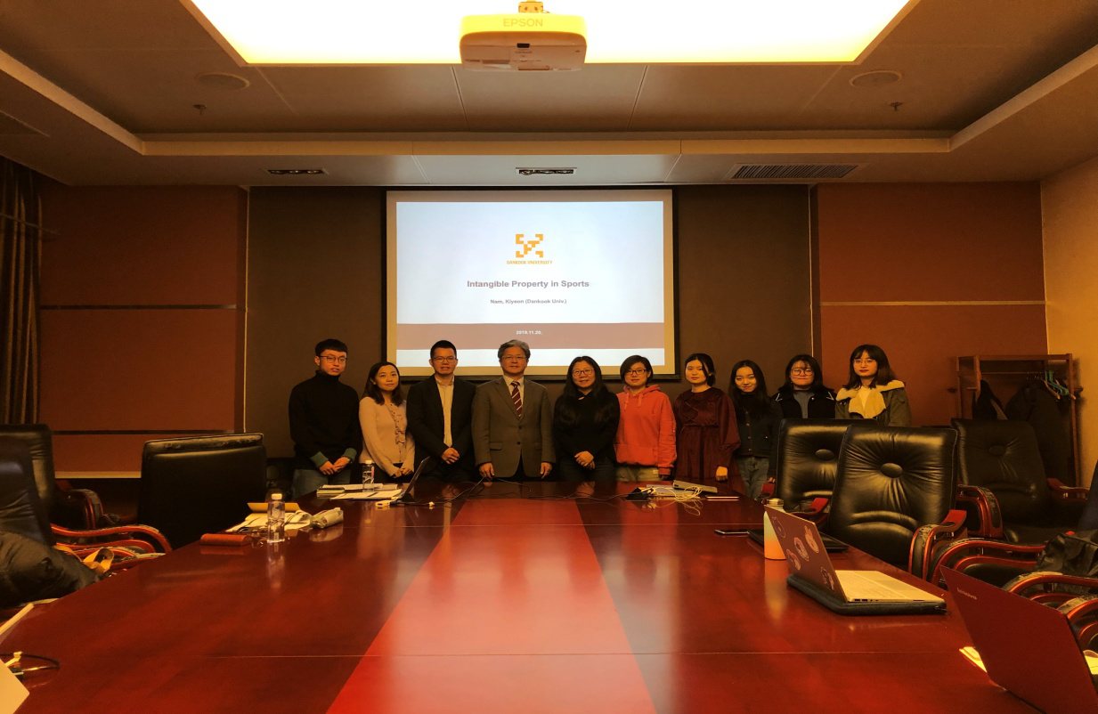 2019年12月2日上午,韩国檀国大学Nam Kiyeon教授做客FUN88乐天使进行学术交流,并于公司南路校区学术会堂602会议室,作了主题为“体育产业的无形资产保护”的讲座。本次讲座由FUN88乐天使杜颖教授主持,张金平博士和FUN88乐天使部分博士研究生、硕士研究生参加了讲座。