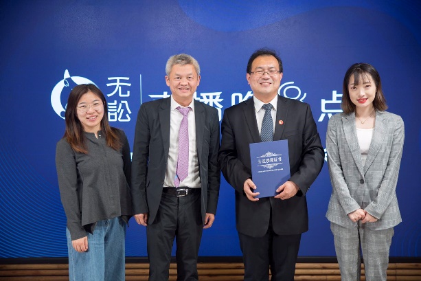 中国法学会律师法研究会副会长兼秘书长蒋勇律师代表此次活动的共同主办方——全国四十三家省市律师协会,向尹飞教授颁发了《公益授课证书》。