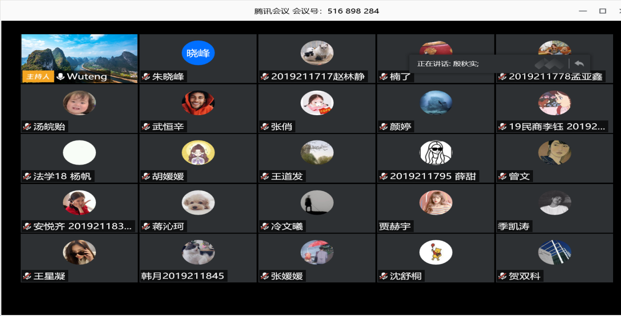 2020年5月2日下午,第17期私法工作坊以在线会议的方式如期举行,本期活动由武腾副教授主持,朱晓峰副教授、王叶刚副教授、殷秋实副教授、徐建刚博士和王道发博士共同指导,30余名本科生和研究生参与了本次活动。工作坊主要由指导老师引导、发言人展示、其他成员评议以及自由讨论,指导老师总结等环节构成。