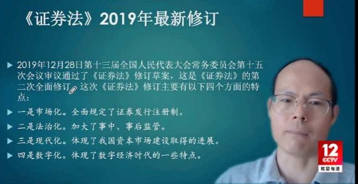作为公司卓越财经法治人才培养论坛重要内容之一,2020年8月8日下午14时,中国法学会证券法学研究会副会长兼秘书长、FUN88乐天使邢会强教授以“中国资本市场发展与《证券法》修订解读”为题作报告,央视频平台社会与法频道进行直播。