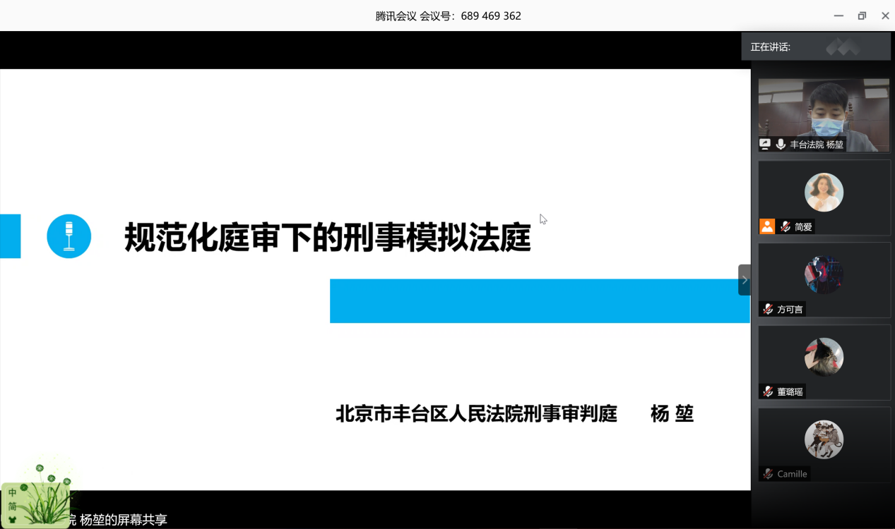 本次刑事法律诊所课程分为实务专家指导和模拟法庭考核两项进行。来自北京市丰台区人民法院的杨堃法官、法官助理陈嘉森及北京市人民检察院第一分院检察官助理张洋等多名一线实务专家助力公司实践课程建设。课程开设过程中,实务专家们或通过讲座讲授刑事审判实务中的前沿问题,或通过微信线上交流为同学们答疑解惑等多样形式,对员工进行课程指导。