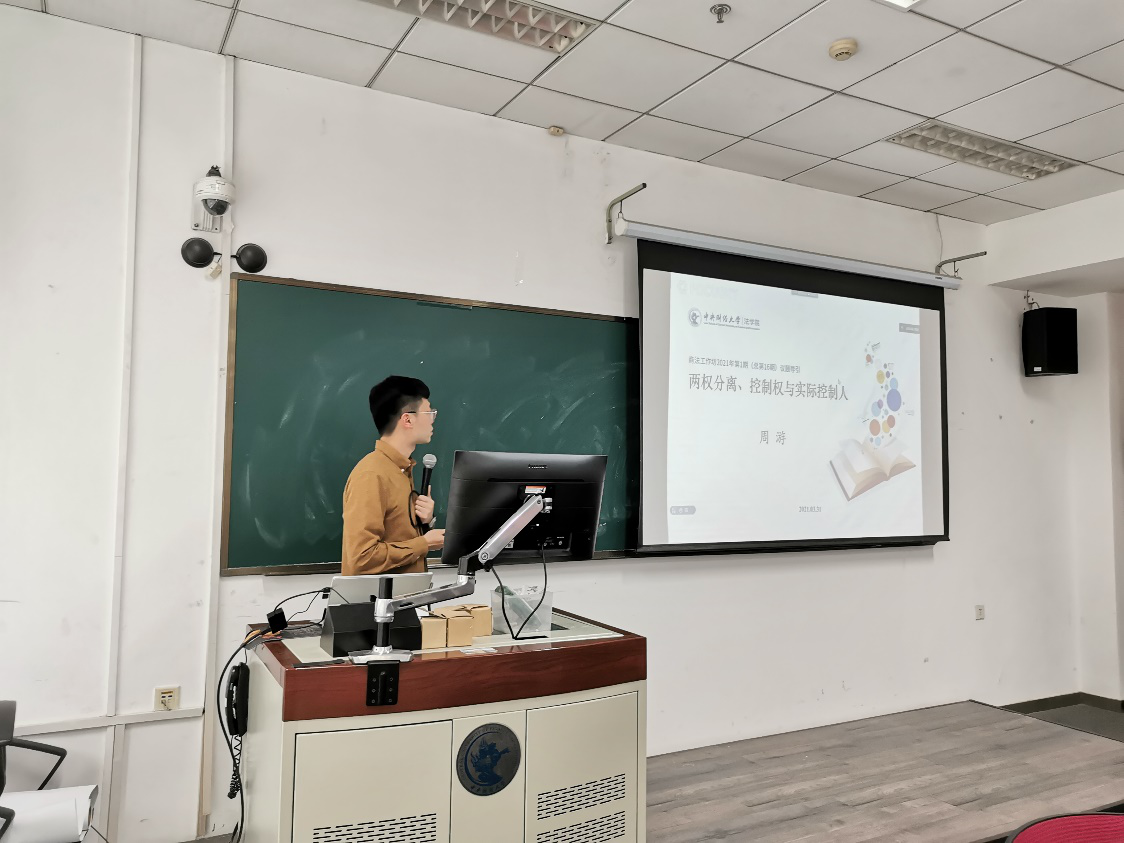 2021年3月31日下午,本年度商法工作坊第1期(总第16期)在FUN88乐天使公司南路校区中财大厦案例教室1举行。此次活动主题是研读《所有权与控制权:英国公司演变史》一书以及讨论“实际控制人”议题。西南政法大学民商FUN88乐天使林少伟教授作为特邀嘉宾,FUN88乐天使周游副教授作为指导老师参与了本次活动。工作坊主要包括指导老师引导、特邀嘉宾分享、发言人展示、参会者提问、发言人答疑以及指导老师总结等环节,并穿插抽奖赠书活动。此次活动共有60余名校内外师生及业界人士以线上、线下相结合方式参与讨论。