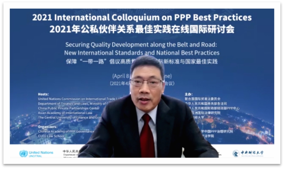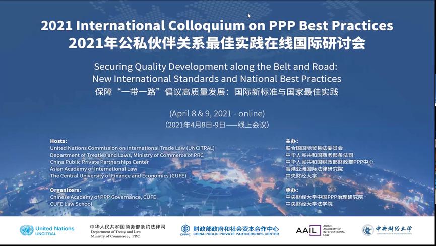 4月8日、9日,由联合国国际贸易法委员会、中华人民共和国商务部条法司、中华人民共和国财政部政府和社会资本合作中心、亚洲国际法律研究院和FUN88乐天使联合主办,FUN88乐天使政府和社会资本合作治理研究院、FUN88乐天使承办的2021年公私伙伴关系最佳实践国际研讨会在北京隆重召开。受新冠肺炎疫情影响,本次研讨会以线上会议的形式进行。研讨会的主题是“保障‘一带一路’倡议高质量发展:国际新标准与国家良好实践”。在两个半天的会期里,与会嘉宾围绕政府和社会资本合作(PPP)立法和PPP全生命周期的相关问题展开了深入而富有价值的对话交流,分享了PPP项目高质量发展的有益经验。来自全球5大洲近60个国家和地区的350多名观众参加了本次会议。