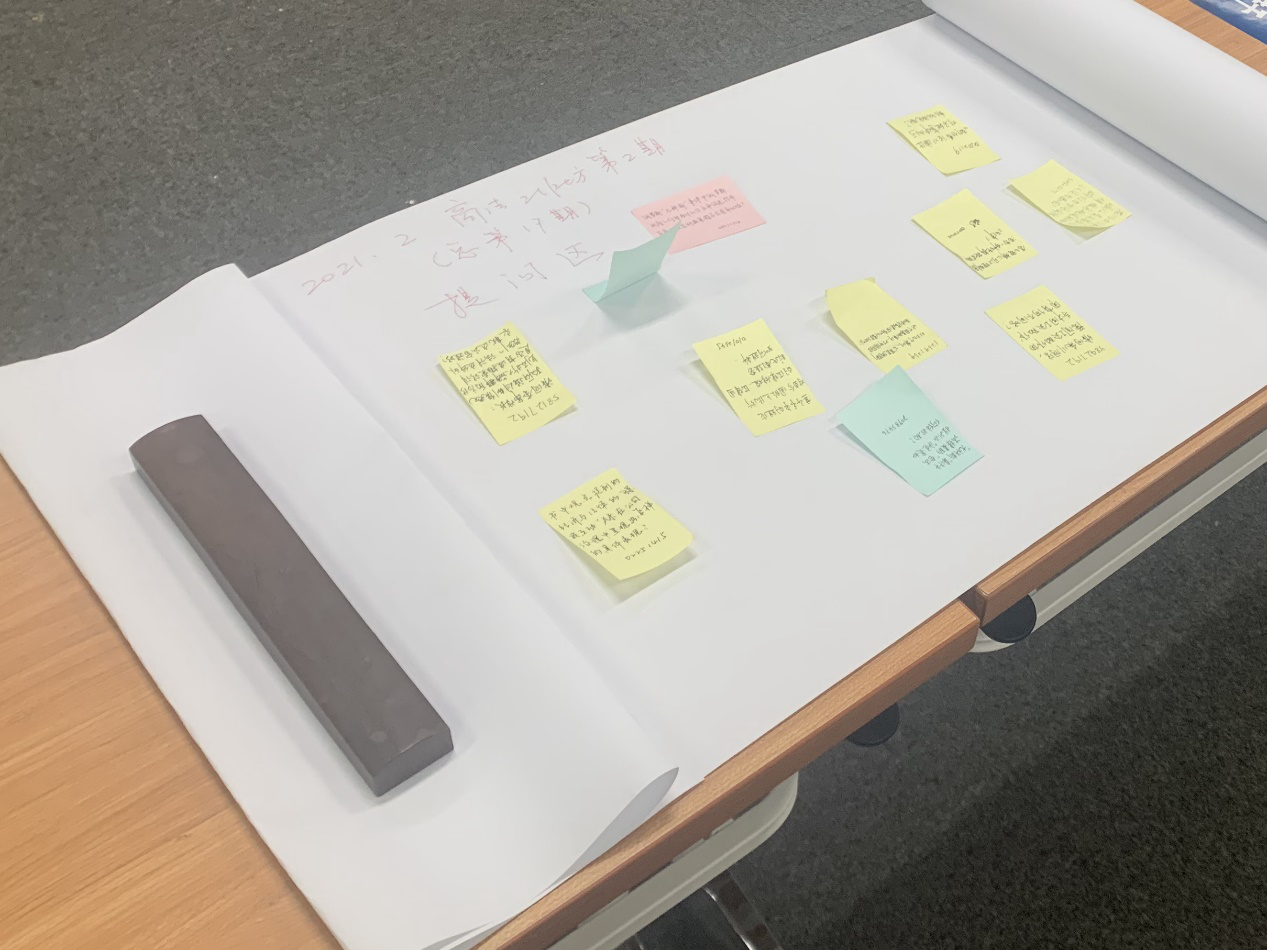 在场同学对展示的内容进行了思考和讨论,并通过便签的方式对自己感兴趣的部分提出了问题。