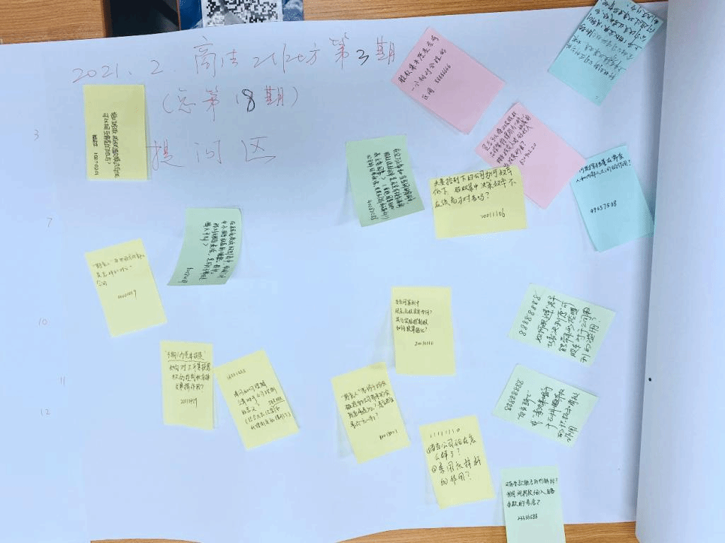 在场同学对展示的内容进行了思考和讨论,并通过便签的方式对自己感兴趣的部分提出了问题。