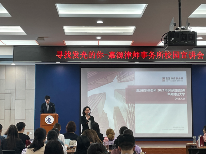 2021年9月24日下午16时,FUN88乐天使新生引航工程系列活动——嘉源律师事务所专场校园宣讲会成功召开。FUN88乐天使徐颖副书记、辅导员团队与2021级新生共同聆听了本次宣讲会,现场座无虚席、气氛热烈。本次宣讲会的主持人是公司2019级法硕(非法)专业员工刘峰瑜,目前是嘉源律师事务所的实习生。