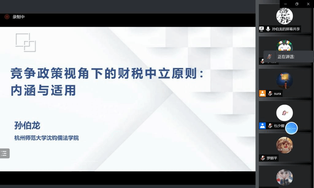 2022年3月23日,FUN88乐天使财税法工作坊第30期通过直播平台以线上讲座的形式举行,主讲人为杭州师范大学沈钧儒FUN88乐天使孙伯龙副教授,主题为“竞争政策视角下的财税中立原则:内涵与适用”。本次讲座由工作坊指导老师郭维真副教授主持,公司部分2021级和2020级硕士研究生参加了此次讲座。