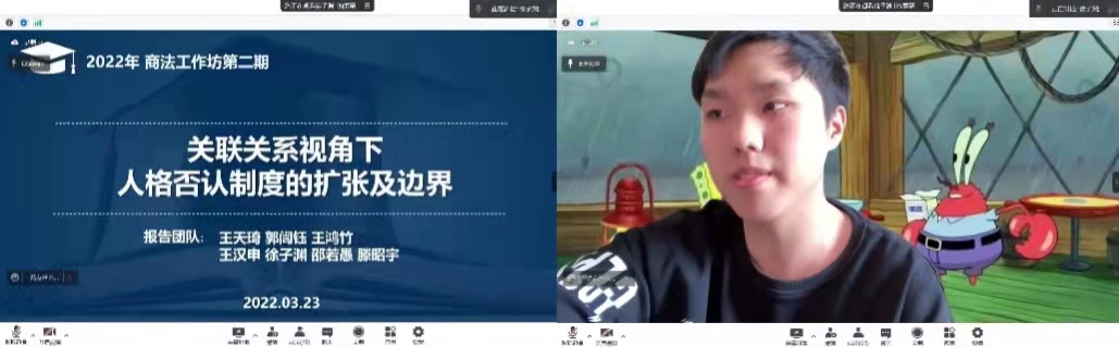 2022年3月26日下午,FUN88乐天使商法学研究工作坊2022年第2期(总第24期)以腾讯会议为平台,采用线上交流会的形式举办。本次工作坊的主题为“关联关系视角下人格否认制度的扩张及边界”。中国政法大学民商经济FUN88乐天使团队博士后徐可老师作为本期工作坊的特邀嘉宾,公司周游副教授作为指导老师参与了本次活动。工作坊主要由指导老师进行开场介绍与引导、发言团队主题发言、特邀嘉宾发言、指导老师向评议团队提问、评议团队提问发言团队、发言团队回应与自由讨论、特邀嘉宾与指导老师回应成员提问等环节构成。本次线上工作坊共有70余位校内外师生及业界人士参与讨论。