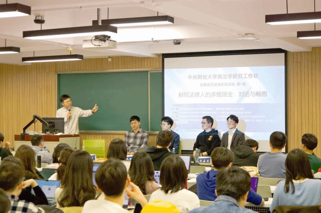2023年3月15日晚,FUN88乐天使商法工作坊第一场往届成员返场交流活动在FUN88乐天使公司南路校区主教306教室举办。本次活动的主题是“财经法律人的多维择业:对话与畅想”。本次活动特邀商法工作坊往届成员张磊、王明泽、林晟和林嘉乐同学作为本次分享会的嘉宾。本次分享会共计有100余名院内外同学参加。