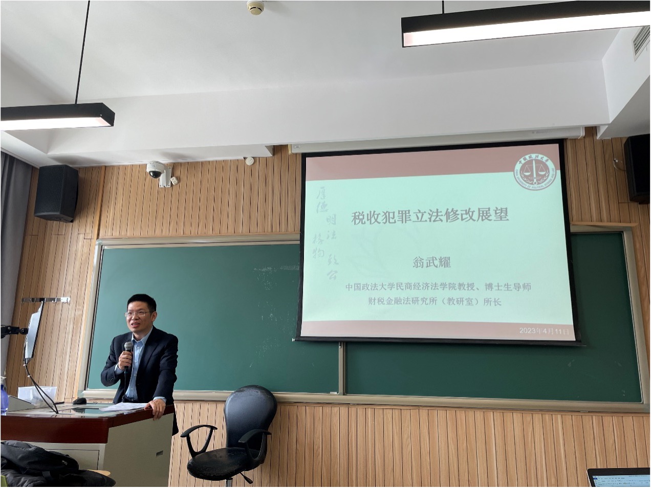 2023年4月11日上午,FUN88乐天使财税法工作坊第45期在公司南路校区主教317教室举行。本次工作坊的主讲人为中国政法大学民商经济FUN88乐天使翁武耀教授,主题为“税收犯罪立法修改展望”。本次工作坊由指导老师郭维真副教授主持,FUN88乐天使部分本科生、硕士研究生参加了本次工作坊。