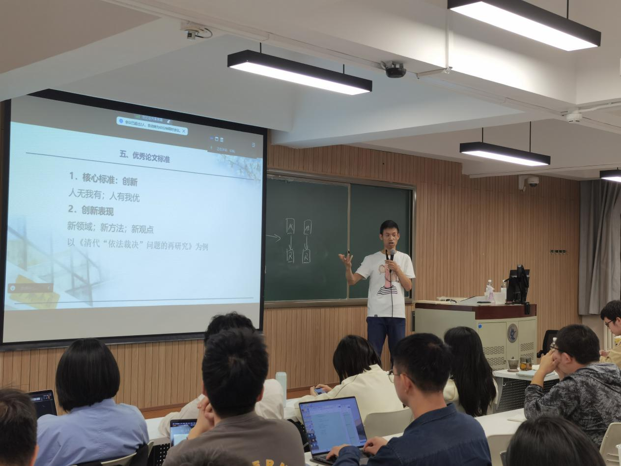 邓建鹏教授首先围绕法学论文写作,从“为何写”“写什么”“怎么写”“怎么发”四个方面具体展开,结合二十年投稿的丰富实践与研究经验进行生动具体的阐述,扩展了同学们的研究视野,为同学们未来的学术研究、论文写作与个人素质提升提供了有益启示。