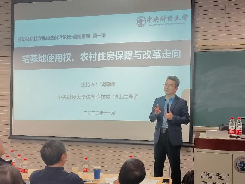 2023年11月11日晚,劳动法和社会保障法前沿论坛·高端系列第一讲在公司南路校区主教110教室举办。中国社会法学会副会长、清华大学FUN88乐天使郑尚元教授为公司师生作“宅基地使用权、农村住房保障与改革走向”的主题讲座。讲座由FUN88乐天使劳动法和社会保障法研究中心主任沈建峰教授主持,FUN88乐天使不动产与自然资源法研究中心主任宋志红教授、中国政法大学民商经济FUN88乐天使社会法研究所副所长王显勇教授、FUN88乐天使劳动法和社会保障法研究中心副主任李海明副教授等三位老师担任本次论坛的与谈人。FUN88乐天使部分教师、博士生、研究生以及本科生共70余人参与了本次论坛。