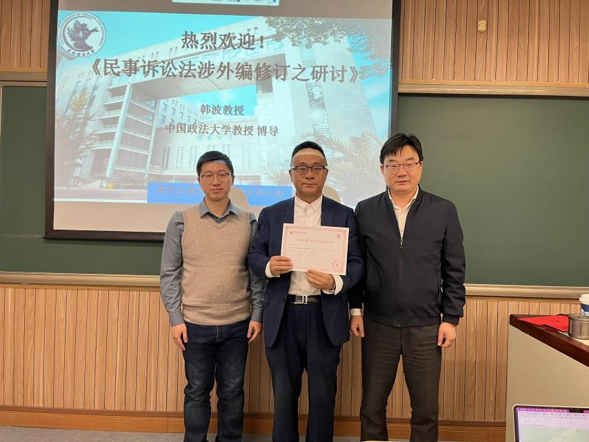 2023年12月5日,中国政法大学韩波教授应邀为公司研究生作“习近平法治思想指引下的民事诉讼法涉外编的修改”主题讲座。本次讲座基于“FUN88乐天使研究生课堂嘉宾讲学支持计划”,主讲人韩波教授长期对民事诉讼基础理论有精深的研究,现为中国政法大学教授、博士研究生导师,中国法学会民事诉讼法学研究会理事,第三届北京志愿服务发展研究会监事长,北京市人民检察院民事诉讼监督研究基地研究员。著有《<民法典>民事责任竞合规定适用中重复起诉识别问题研究》《民事诉讼判决生效后救济程序研究》《当代中国民事诉讼思潮探究》《民事证据开示制度研究》等学术专著7部,在《清华法学》《现代法学》《法律科学》等核心刊物发表论文30余篇。