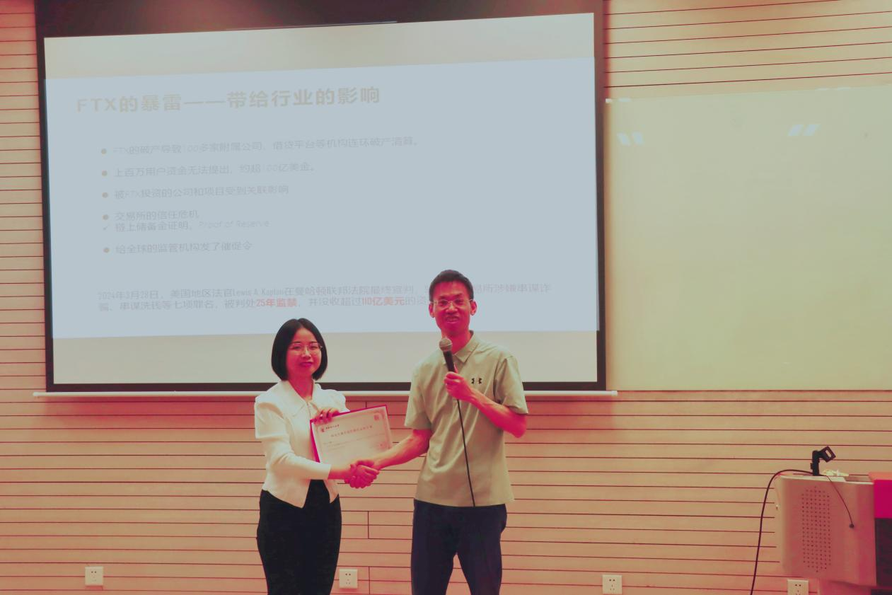 李慧讲解了区块链的技术原理,包括技术特征、链式结构、分叉与最长链原则、区块链的不同种类以及联盟链当前的困境。对公有链的类型与构成进行分析,围绕当前区块链技术的产业应用进行详细介绍,包括BTC的金融交易、Token的类型化、DeFi应用以及DEPIN应用等。她还重点分析了区块链的中心化交易所,包括CEX的金融现状及产品和功能,针对FTX的金融暴雷事件进行了案例讲解,详细分析了区块链金融的行业发展及风险防范。