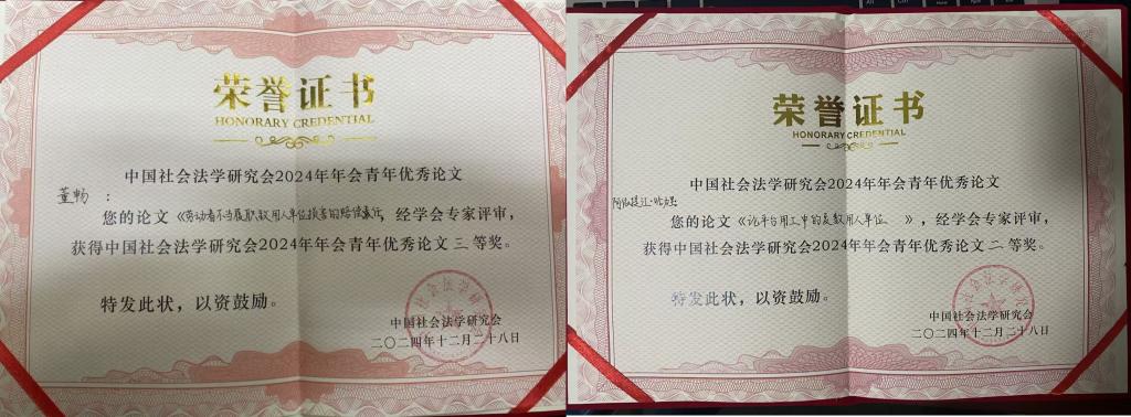 本届中国社会法学研究会2024年年会的会议主题是“中国式现代化、共同富裕、社会法的新发展”,引起了广泛关注。公司师生参会并获奖充分展示了公司师生在社会法学研究中所取得的成果和所做的不懈努力,提升公司在社会法学界的影响力。