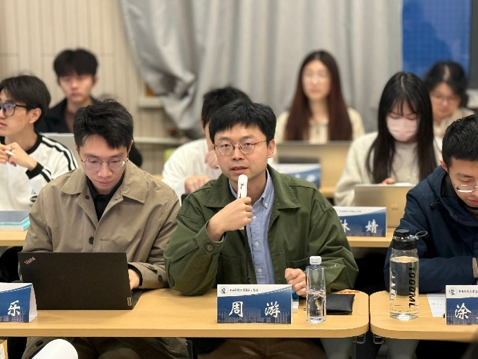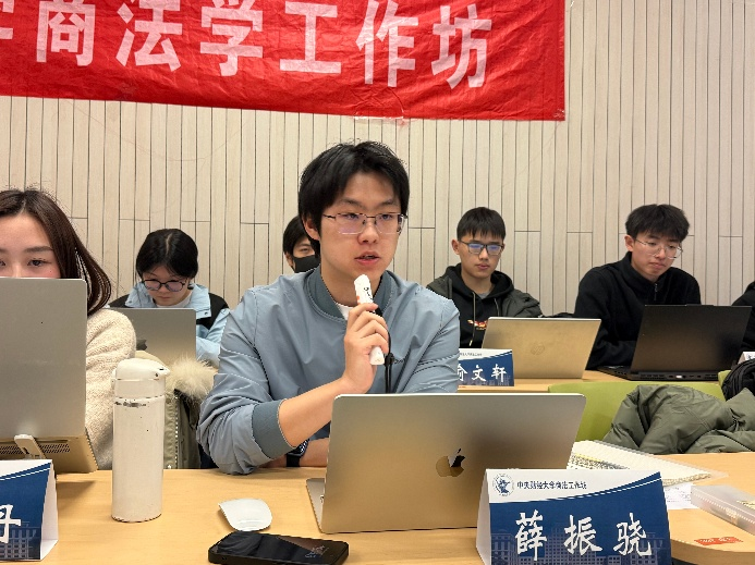 在正式开启议题讨论前,周游老师简要介绍了商法工作坊的开展形式和活动流程,特别强调了本年度工作坊的创新,即以“公司法+”的模式为核心,聚焦公司法与竞争法、会计法、刑法等领域的交叉研究。王湘淳老师明确了本次议题讨论的方向,指出证券法与公司法的交叉视域下董监高责任承担问题的复杂性,需结合民法相关理论开展议题研究。