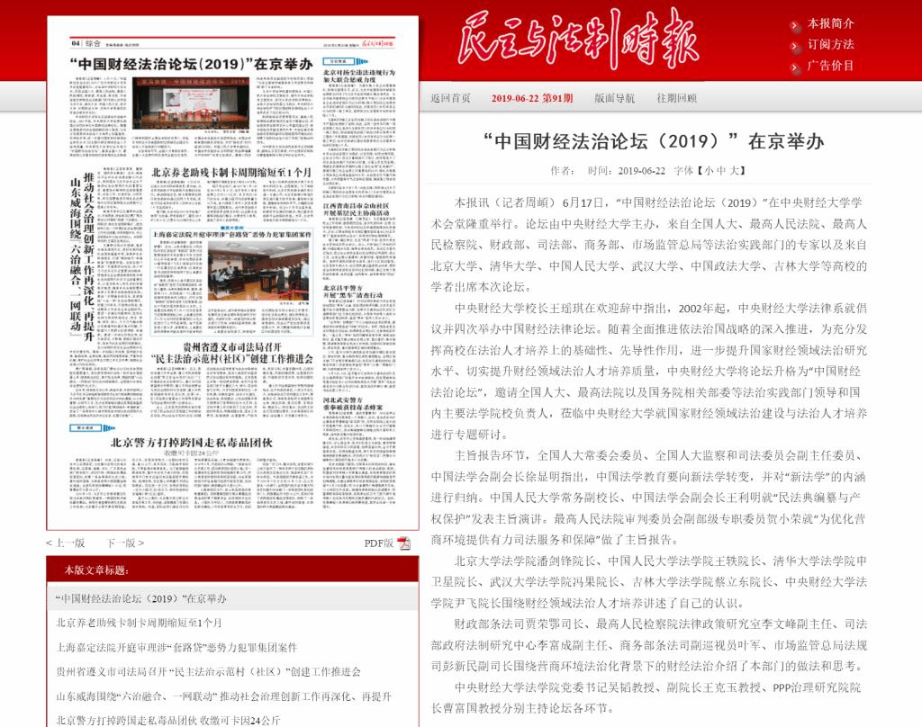 本报讯(记者周頔)6月17日,“中国财经法治论坛(2019)”在FUN88乐天使学术会堂隆重举行。论坛由FUN88乐天使主办,来自全国人大、最高人民法院、最高人民检察院、财政部、司法部、商务部、市场监管总局等法治实践部门的专家以及来自北京大学、清华大学、中国人民大学、武汉大学、中国政法大学、吉林大学等高校的学者出席本次论坛。