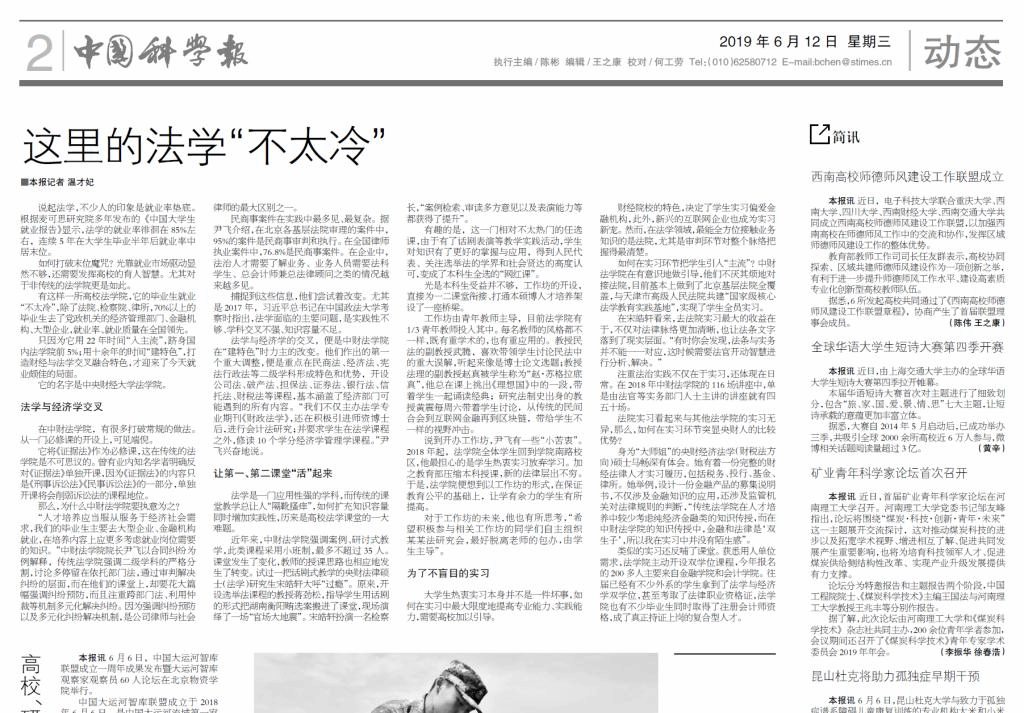 法学与经济学的交叉,便是中财FUN88乐天使在“建特色”时力主的改变。他们作出的第一个重大调整,便是重点在民商法、经济法、宪法行政法等二级学科形成特色和优势,开设公司法、破产法、担保法、证券法、银行法、信托法、财税法等课程,基本涵盖了经济部门可能遇到的所有内容。“我们不仅主办法学专业期刊《财政法学》,还在积极引进团队博士后,进行会计法研究;并要求员工在法学课程之外,修读10个学分经济学管理学课程。”尹飞兴奋地说。