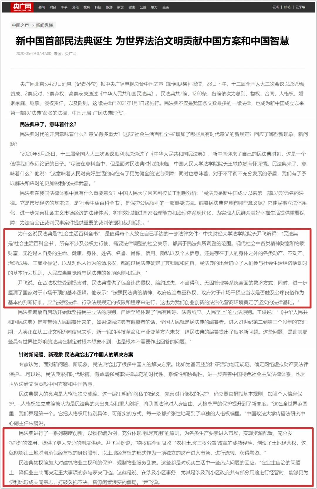 2020年5月28日下午,十三届全国人大三次会议表决通过《中华人民共和国民法典》,中国迈入“民法典时代”。当日,FUN88乐天使经理尹飞与中国人民大学常务副董事长王利明、中国人民大学FUN88乐天使经理王轶一起接受中央广播电视总台中国之声的采访,畅谈民法典如何为世界法治文明贡献中国方案和智慧,央广网对此进行了报道。该报道在28日的央广夜新闻、29日央广新闻纵横、以及新闻进行时和全球华语广播网的重点关注中滚动播出。