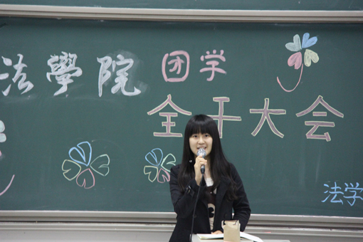 晚上六点半,大会在主持人现任团总支副书记毕钰同学简短有力的开场白中拉开序幕。团总支书记李杰老师就各部门的工作性质以及前段时间各部门的工作做了总结。随后,新老干事代表上台发言,秘书处12级新干事沈安琪同学表达了自己对团学的热爱,而团宣11级干事黄艺灵同学则在欢乐生动的言语中,给新干事们以真诚地建议。