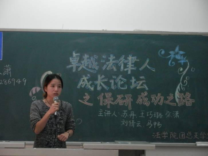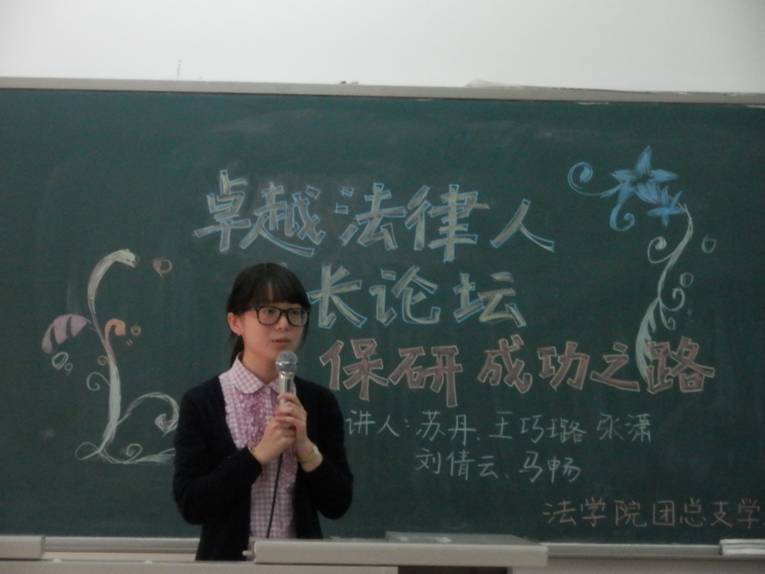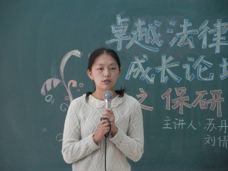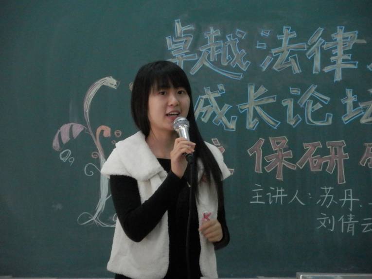 本校直保攻读法学研的刘倩云同学则在发言中简略介绍了保研的相关情况,并大致讲述了老员工活的丰富内容,提出了积极参加社会实践、加强心理建设等建议。