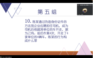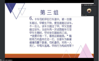 这一比赛结合实际生活中可能遇到的状况,考验了同学们的基本法律常识,引导同学们学法铭于心,守法践于行。该环节也考察了同学们对知识的熟练程度与心态的稳定,参赛选手们以其活跃的发散思维与过硬的法学知识,展现了法律人应有的风采。