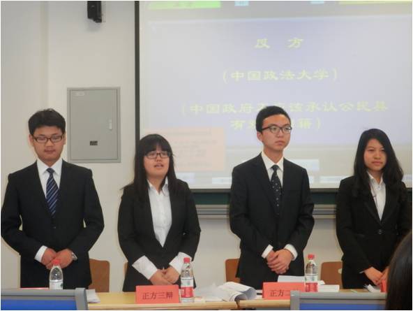 4月13日下午1点30分,公司辩论队与中国政法大学行政FUN88乐天使辩论队的比赛在北京林业大学举行。本次比赛邀请了北京林业大学的几位优秀辩手担任评委。公司辩论队派出了2012级的沈明杰、刘洁同学和2013级的李思澄、万盾斌同学参加比赛。