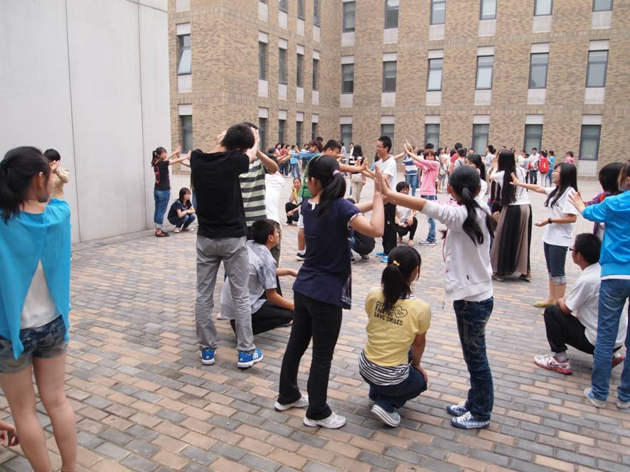 简短的交流会之后,新生们在学长学姐的带领下,开始了破冰之旅——欢乐游戏串串烧。第一个游戏是猜词游戏“指手画脚”,新生被分为四个小组参加活动,有趣的猜词和丰富的形式,使现场气氛很快就活跃起来,最后第四小组获得了第一名,得到了印有中财校徽的文具奖品。趁着大家兴趣十足,3班同学来到教室外空地,玩起了“大树和松鼠”的游戏,该游戏活动身心,惩罚不失乐趣,大家都乐在其中。最后,本次破冰之旅的压轴节目——“串名字”游戏隆重登场,在该环节里,小组成员之间相互速记名字、相互认识,全班同学顺利通过,大家在歌声、笑声中愉快地度过了破冰之旅。