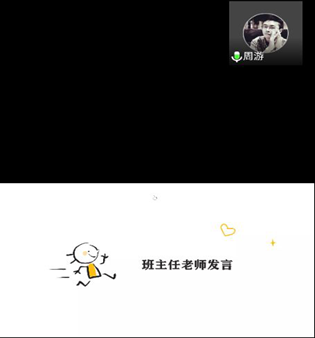 随后,法学18-1班班主任周游老师,18-2班主任武腾老师依次发言。周游老师主要围绕在当前“疫情防控常态化”的形势下,向同学们提出了几点建议。在生活方面,周游老师提醒同学们要继续做好日常防护,注重个人卫生,增强体育锻炼;在学习方面,要做好学习常态化,积极适应线上学习,合理规划做好课程,培养自律品质;在心态方面,他强调同学们应该用更加理性的态度对待疫情期间的各类信息,不传谣不信谣,用平和的心态度过当前的特殊时期。同时,周游老师鼓励同学们多通过运动、阅读等方式来调节自己的心理状态,克服消极情绪,保持积极向上的学习生活态度。