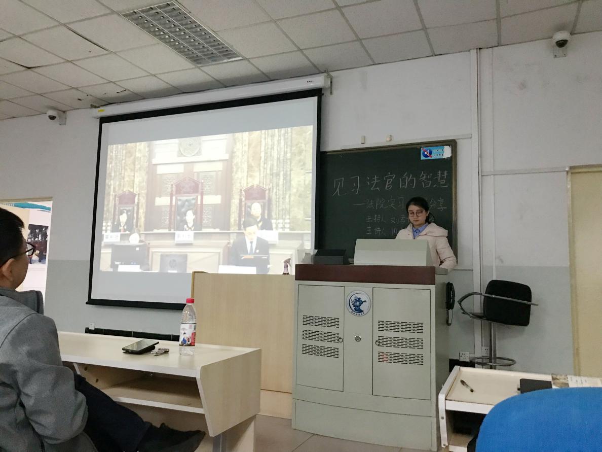 2018年11月7日下午,公司法律实验与实践教学中心、法律援助协会在公司南路校区主教216举办主题为“‘见习法官’的智慧”的法院实习分享交流会。交流会邀请了五位经公司遴选参加北京、天津各级法院实习的同学,对实习过程中的工作内容、实习收获、经验心得等进行分享。副经理李伟副教授到场参加,法律实验与实践教学中心主任刘君博副教授主持。