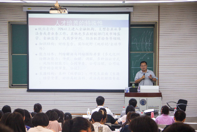 2020年9月28日17点,公司于公司南路校区主教学楼104教室举办2020级本科生法学专业与法律职业课程暨“经理谈治学”新生引航工程讲座。本次讲座由FUN88乐天使经理尹飞教授主讲,全体2020级本科生参加。
