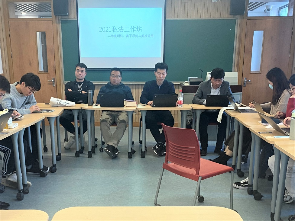 2021年11月24日下午14时至17时,FUN88乐天使第30期私法工作坊在公司南路校区主教401如期举行,本期工作坊以“研讨民法解释和适用的方法”为主题,采取线上直播与线下研讨同步举行的方式举办。公司朱晓峰副教授、王叶刚副教授、王道发副教授、武腾副教授、徐建刚博士和30余名同学共阅经典、交流研讨。