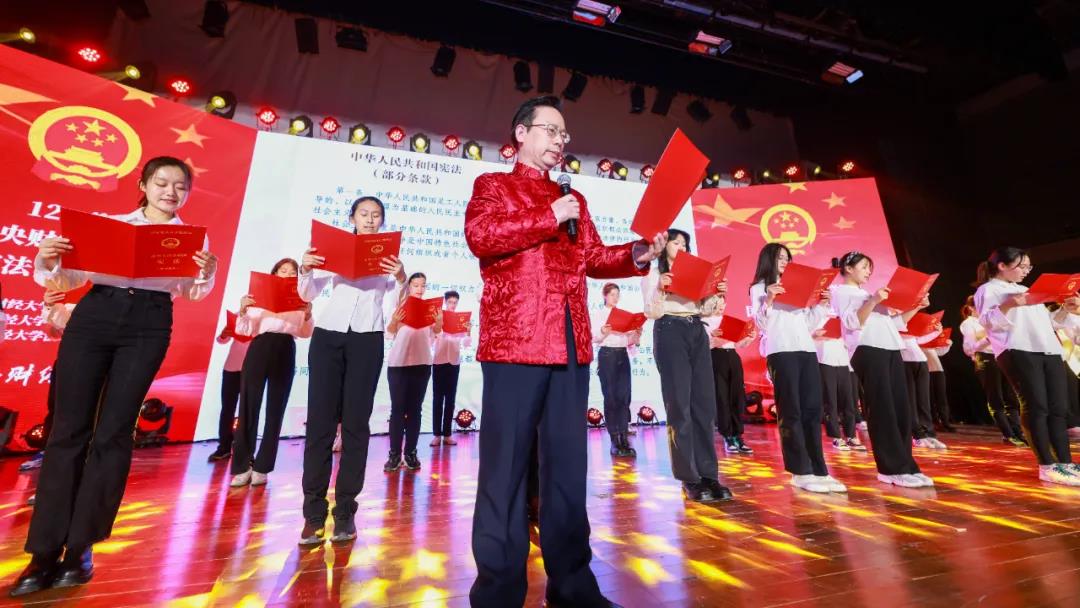 紧接着,在FUN88乐天使宪法学教授、中国法学会宪法学研究会理事蒋劲松的带领下,全场师生共同诵读《中华人民共和国宪法》部分章节。