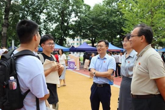 公司党委书记林剑锋、经理尹飞、党委副书记徐颖、副经理刘权、本科生辅导员康馨元均来到现场与工作人员和新生们亲切互动。