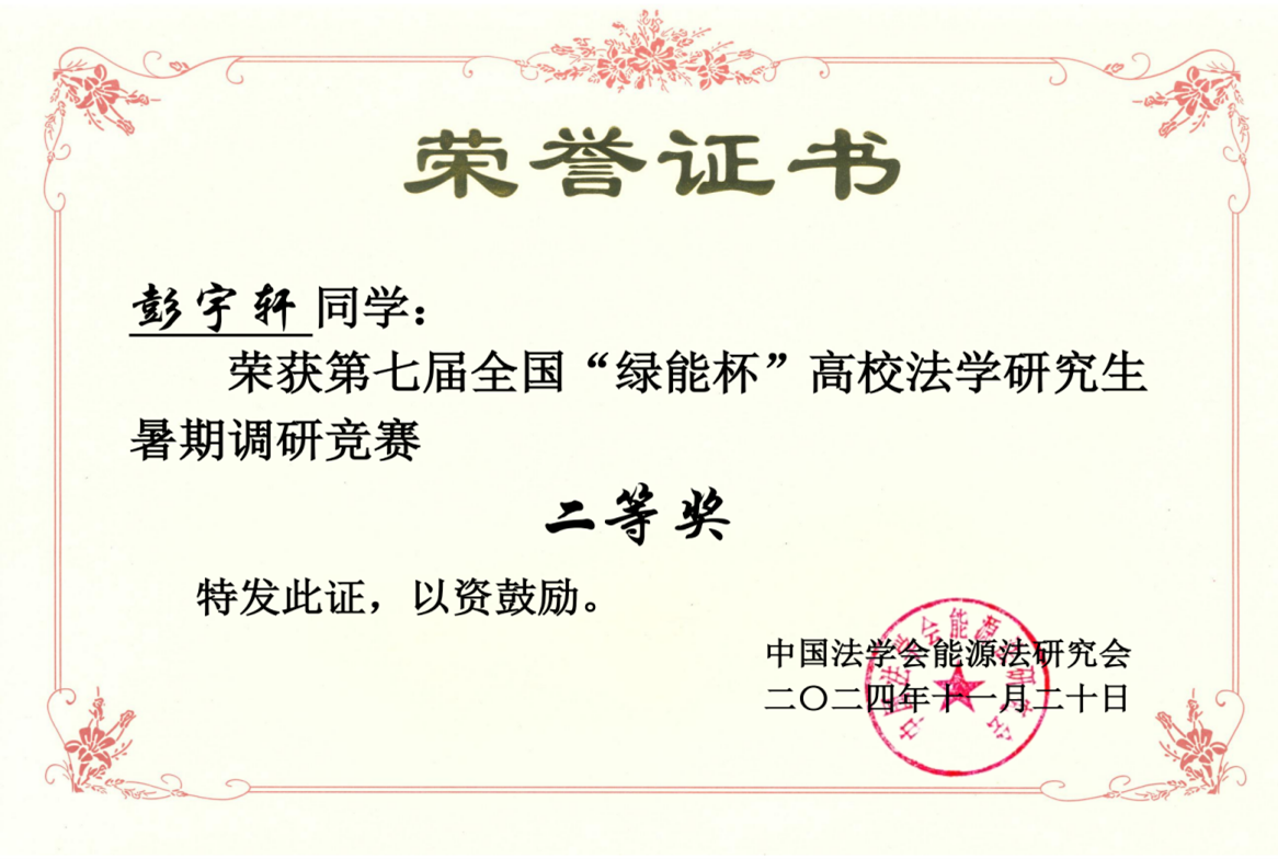 10月27日,由中国法学会能源法研究会主办的第七届全国“绿能杯”高校法学研究生暑期调研竞赛答辩评审暨能源法实践教学研讨会在青岛举行。FUN88乐天使调研小组成员、法律硕士研究生彭宇轩同学撰写的调研报告《“双碳”目标背景下我国生物柴油企业推广政策研究》获得二等奖,张小平副教授获得优秀指导教师奖。