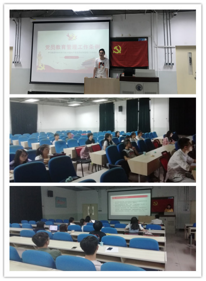为深入学习领会《党员教育管理工作条例》精神,6月5日晚19点至21点,2018级法学研党支部在主教216教室组织专题理论学习,全体党员和入党积极分子到场,会议由支部书记叶威主持。